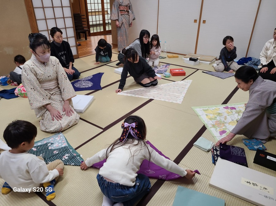 風呂敷にも、きものと同じように“格”や“季節感”があることもお話しし、日本の伝統の奥深さを感じていただけたようです。